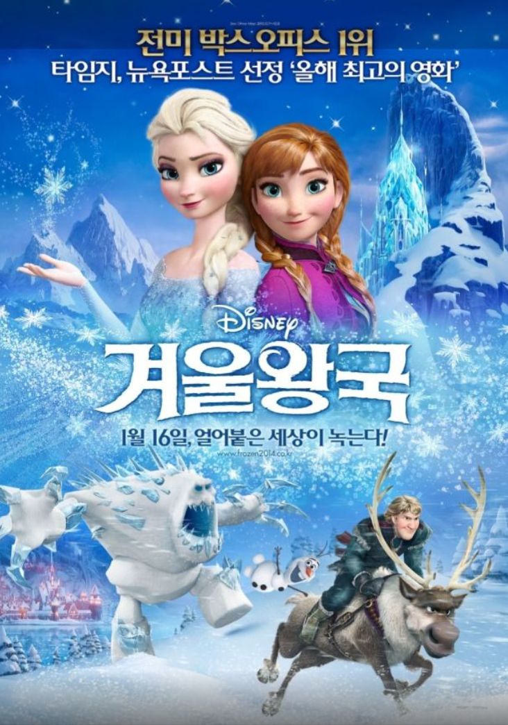 2014년 개봉한 디즈니 애니메이션 영화 《겨울왕국 (Frozen)》은 개봉과 동시에 전 세계를 강타하며 역대 애니메이션 영화 중 최고 흥행 기록을 세웠습니다. 크리스 벅(Chris Buck)과 제니퍼 리(Jennifer Lee)가 공동 감독을 맡았으며, 디즈니 특유의 아름다운 애니메이션과 감동적인 스토리, 그리고 무엇보다도 〈Let It Go〉라는 명곡으로 큰 인기를 얻었습니다.
