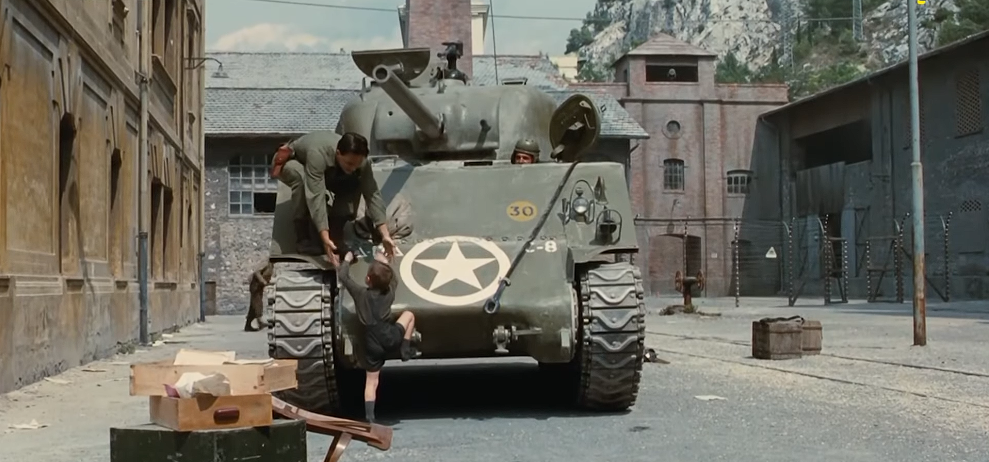 장면 설명: 전쟁이 끝난 후, 연합군의 탱크가 수용소에 도착하고 조슈아는 환호합니다. 이 장면에서 우리는 귀도의 거짓말이 단순한 위로가 아니라, 진짜 희망을 만들어낸 기적임을 깨닫게 됩니다.