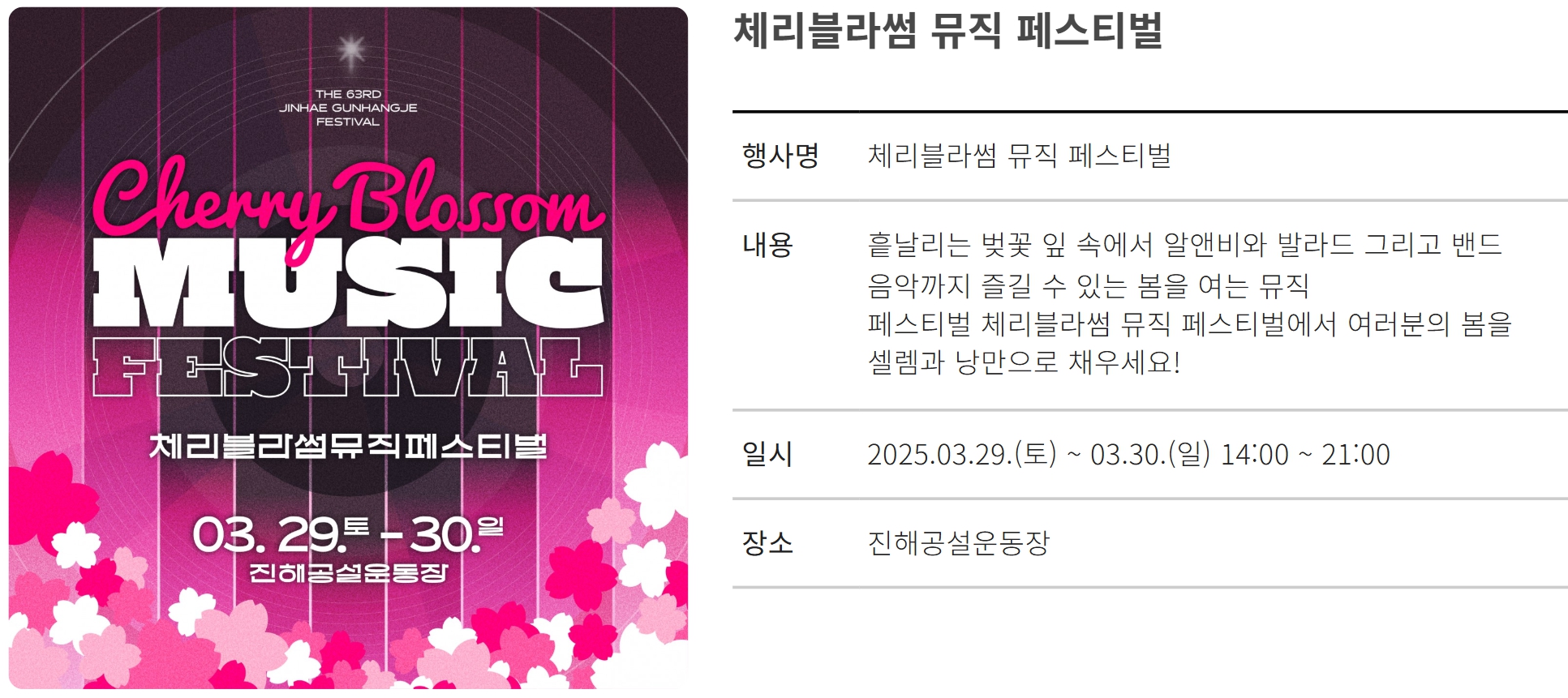 - 체리블라썸 뮤직 페스티벌 - 3월 29일 ~ 3월 30일 / 진해공설운동장