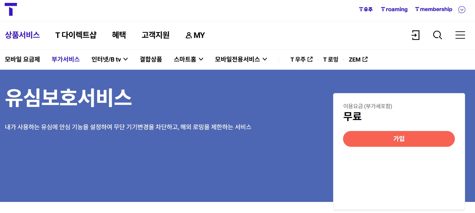 - 해외 로밍 사용자: 로밍 서비스를 이용 중이라면, 유심보호서비스 가입 전 로밍 요금제를 해제해야 합니다. T월드 앱의 ‘로밍’ 메뉴에서 해제 가능합니다.